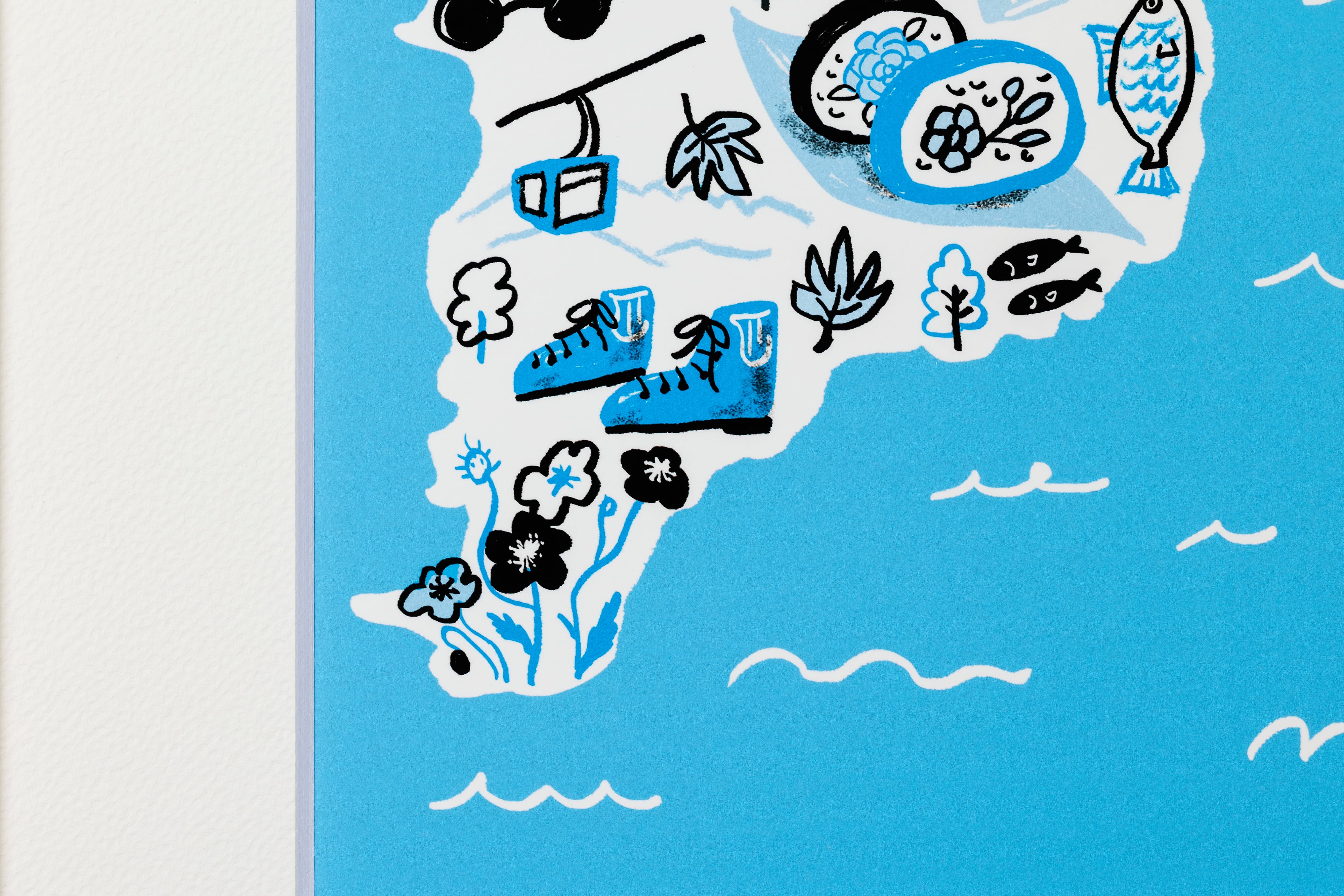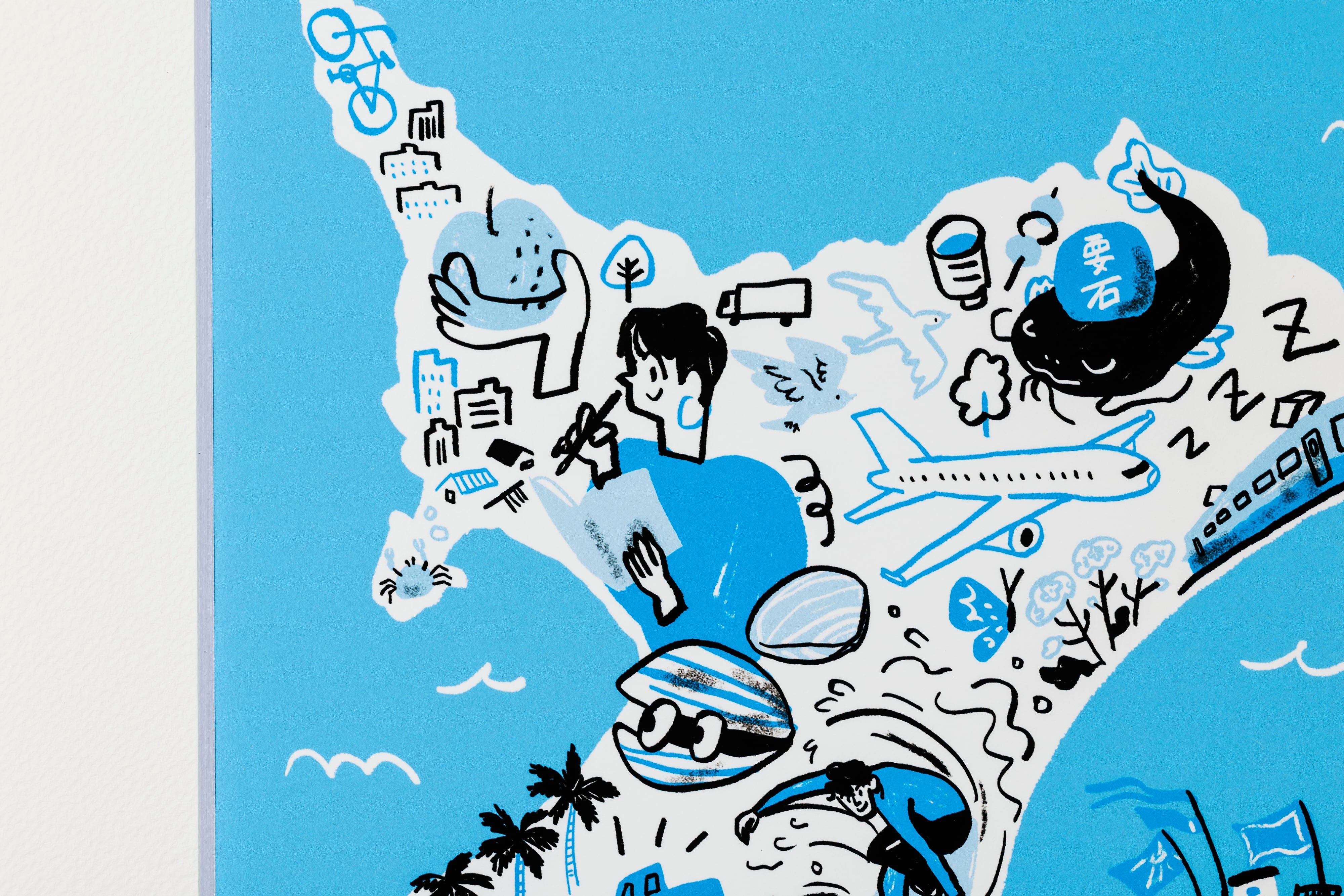 落花生、いちご、梨、海、里山……千葉の魅力をひとつの画面に凝縮しました。爽やかなブルーを基調とした色づかいが印象的な一枚で、千葉クリエイターフェス のポスターにも採用いただいた作品です。